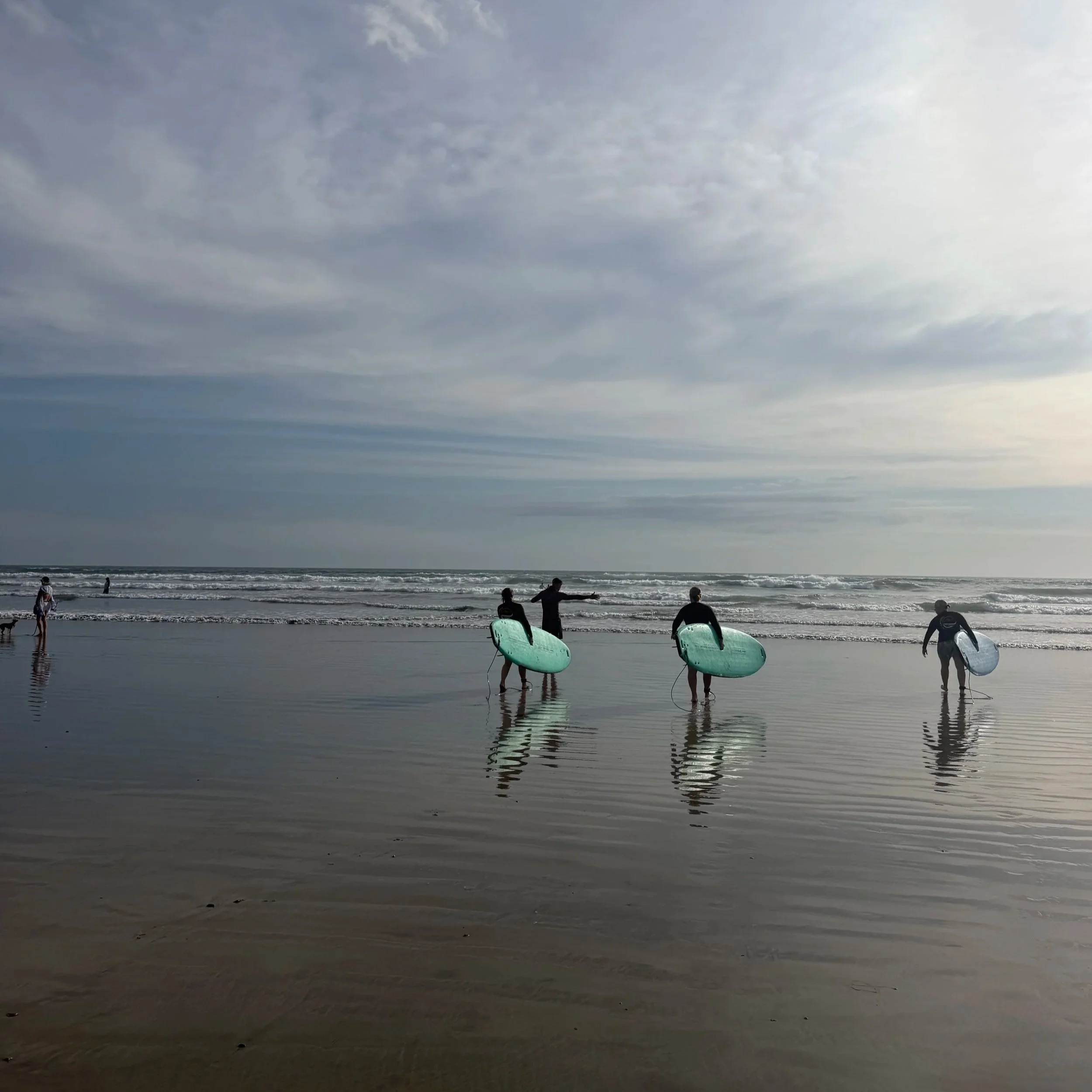 The crew all went to Worthington High School in Ohio - not exactly a surf town. They recently all turned 60. One was working with two new knees. One was managing a past injury. And me? I was in the water with them nursing a surprise ankle injury from the week before, praying for a speedy recovery. Showing up anyway - that’s kind of the whole point. Surfing was new territory.